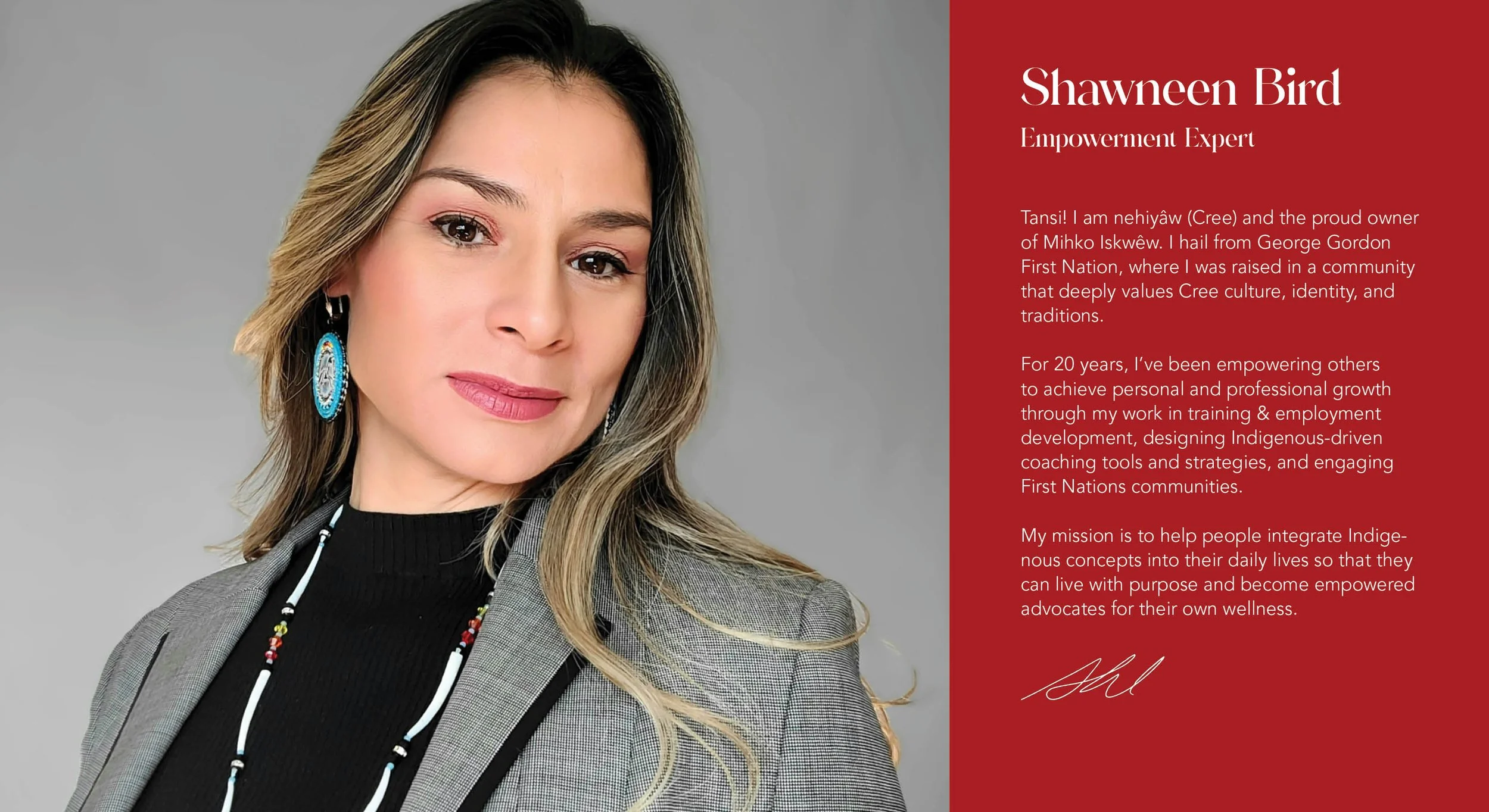 I worked with Empowerment Expert Shawneen Bird on a new brand, business cards, and brochure for her Indigenous Empowerment workshop business, Mihko Iskwêw.